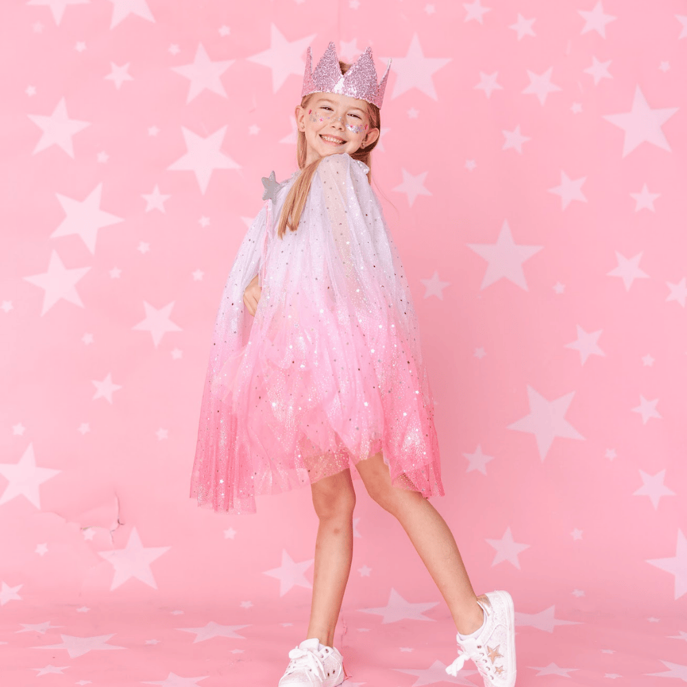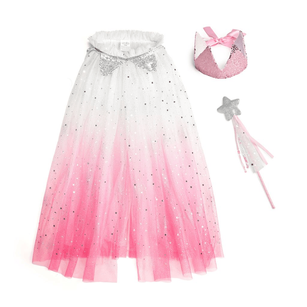 - 1 Cape: Soft, flowy, and lightly shimmering, this cape adds graceful movement and princess flair to any outfit. Easy Velcro closure makes it simple for little hands to put on and take off.