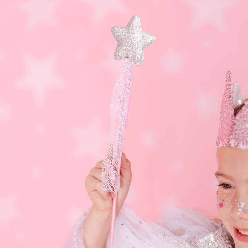 - 1 Wand: Topped with a sparkling silver star shape and trailing satin ribbons, this wand is ready for granting wishes and leading royal adventures.