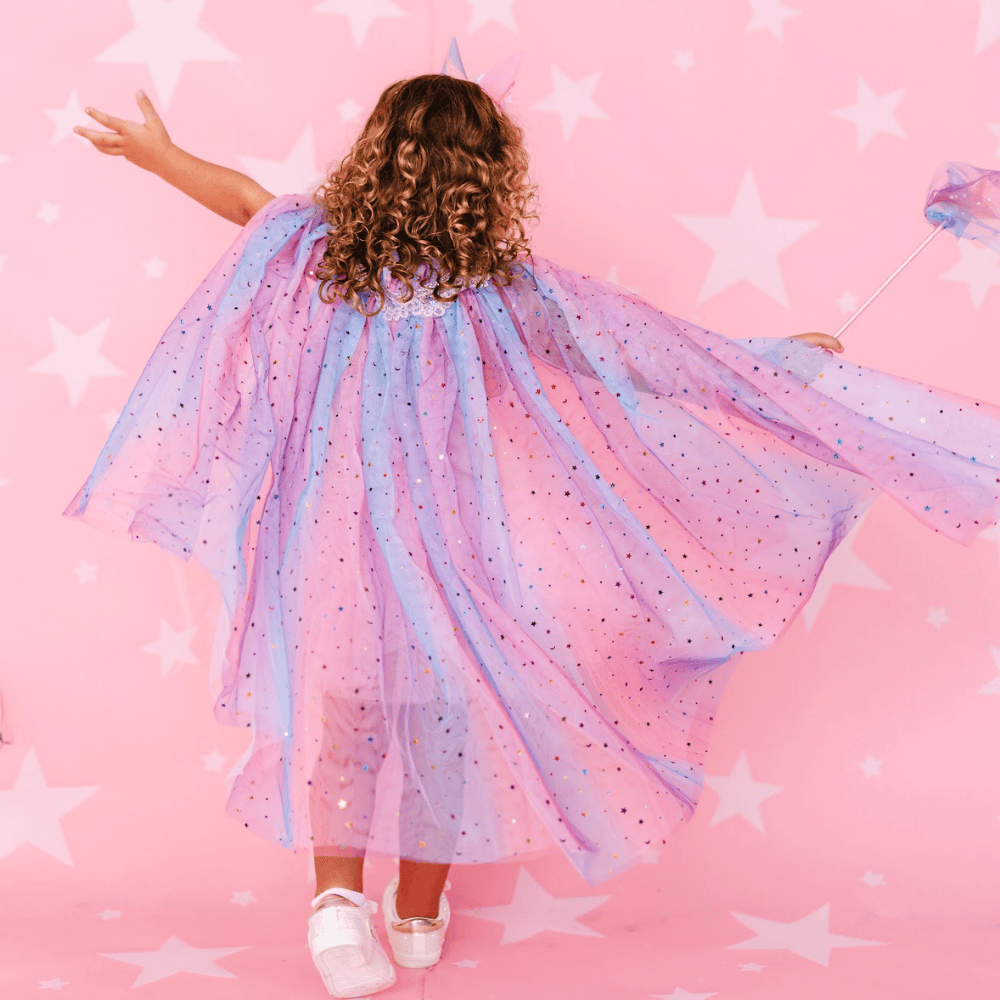 • 1 Cape: Soft, lightweight, and full of sparkle, this flowing cape adds instant enchantment to any outfit. Easy velcro closure for quick dress-up fun.