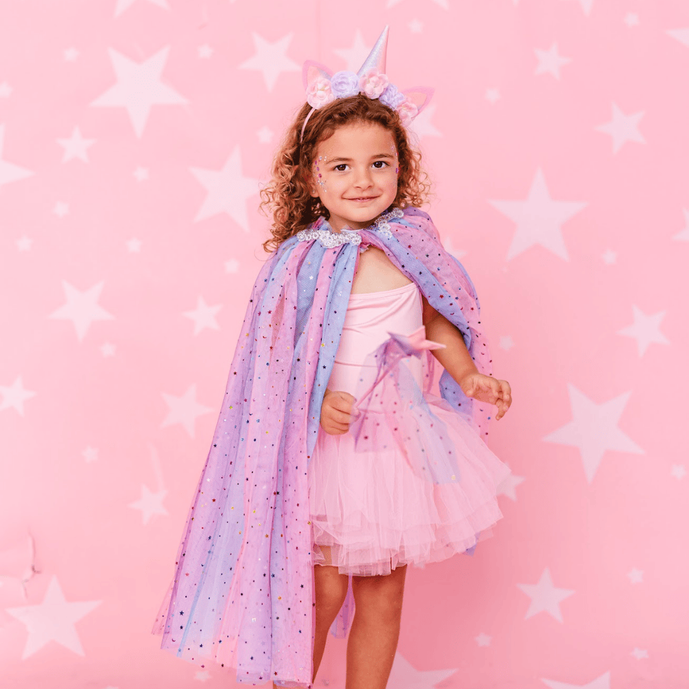Fit for a princess! Sweet Wink dress up kits include everything a little one needs for the ultimate dress up ensemble. Bring a world of whimsy to life with the Purple Unicorn Dress-Up Kit — a magical 3-piece set designed for dreamers, believers, and unicorn lovers of all kinds. With sparkling details and playful charm, this kit turns ordinary playtime into a magical adventure.